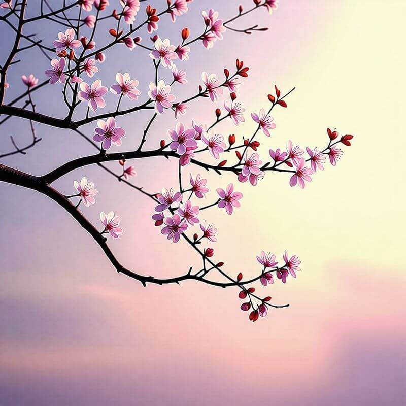 나무가지가 부러지는 꿈은 계획이 중단되거나 목표 달성에 방해를 받을 가능성을 경고하는 메시지입니다. - 나무가지에 꽃이 피는 꿈
