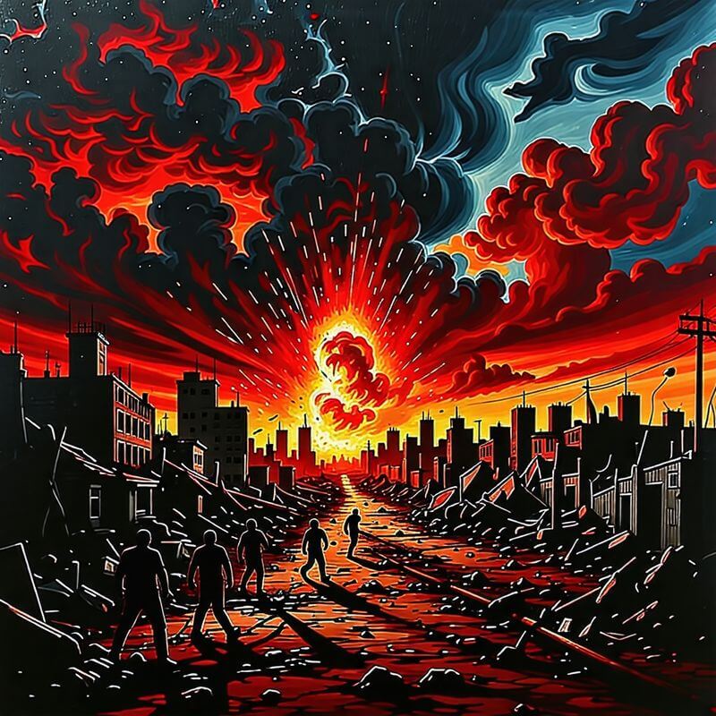 자연 재해로 인한 멸망을 경험하는 꿈은 환경적인 변화에 대한 두려움이나, 외부의 영향을 강하게 느끼고 있다는 신호입니다. 이는 외부의 위협이나 예기치 못한 사건에 대한 불안을 나타낼 수 있습니다. 이 꿈은 대비하고 준비하는 것이 중요하다는 메시지를 담고 있습니다. - 전쟁으로 인한 멸망